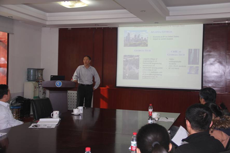 2015年10月16日,美国佐治亚理工学院(Georgia Institute of Technology)邓渝林教授来我院访问。邓教授为我院师生做了题为“Low temperature and high efficiency biomass fuel cell and bio-hydrogen production”的学术报告。介绍了基于生物质(如淀粉、纤维素、木质素等)设计燃料电池和低温生物质产氢方面的研究进展。邓渝林教授发展了一种不依赖贵金属的生物质的燃料电池,具有较好的应用前景。陈景文院长陪同邓教授参观了工业生态与环境工程教育部重点实验室。