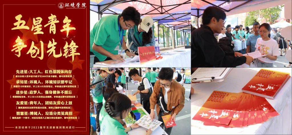 环境学院紧密围绕习近平总书记关于“培养社会主义建设者和接班人”作出的系列重要论述,将强化思想引领作为迎新工作的核心环节,连续三年开展“五星青年,争创先锋”活动,将入学教育贯穿学生迎新工作全过程。“先进星”评比将入党启蒙教育前置,赓续大工人的红色血脉;“求知星”评比推动学生养成良好学习习惯,助力新生正确识读大学;“进步星”评比引导学生强健体魄,健康生活;“友爱星”评比促进班级同学间快速了解,益于班级团队建设;“智慧星”评比突出专业导向,帮助学生掌握环保知识。“五星青年”评比作为2023级新生的一份“高大衔接”的假期作业,着力突出“五育并举”,彰显专业特色,传承学院先锋文化。2023级新生积极响应号召,全部参与该项活动并收获良好效果,彰显昂扬姿态与奋进风貌。
